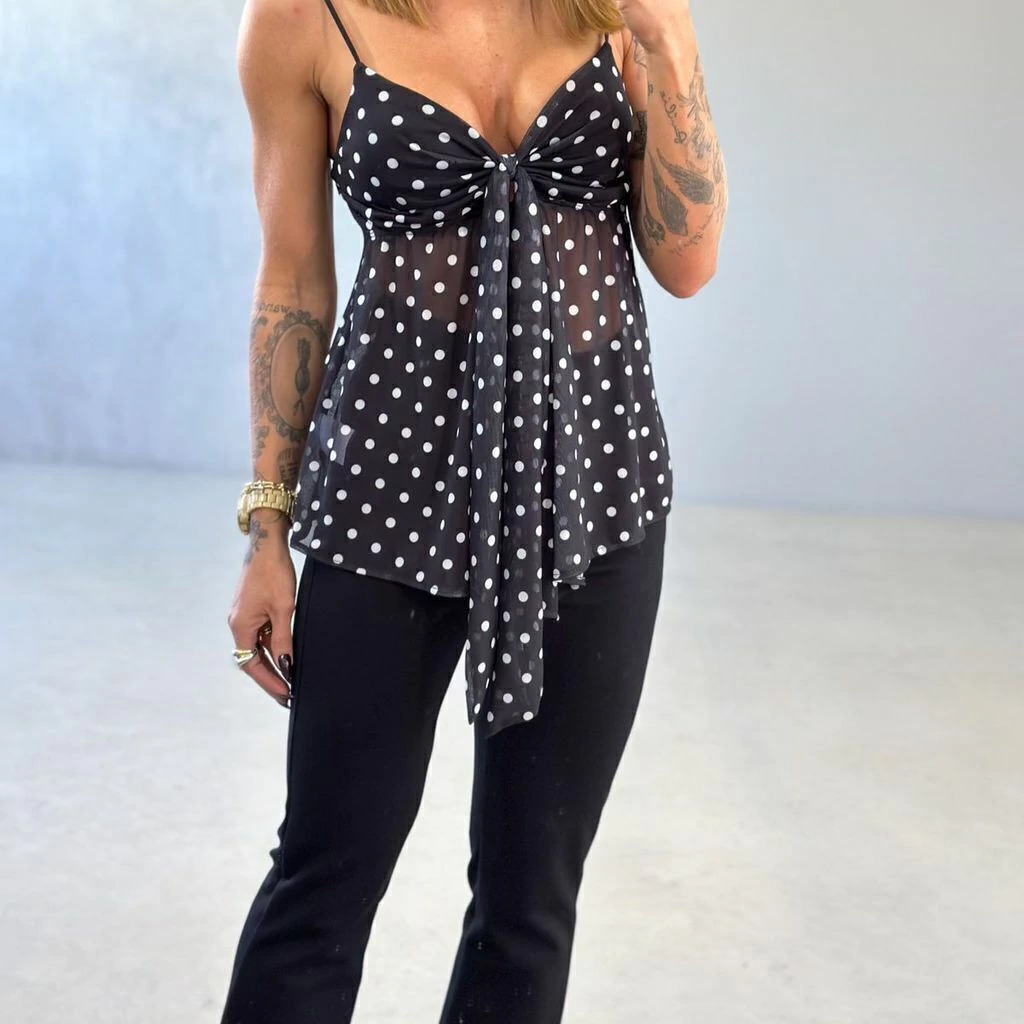 - Estampa poá preta: Clássica, versátil e fácil de combinar com diferentes peças do seu guarda-roupa.