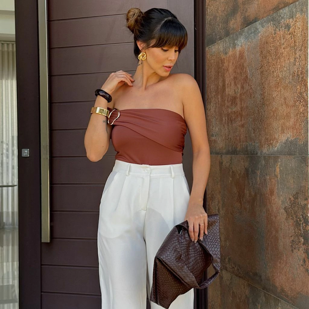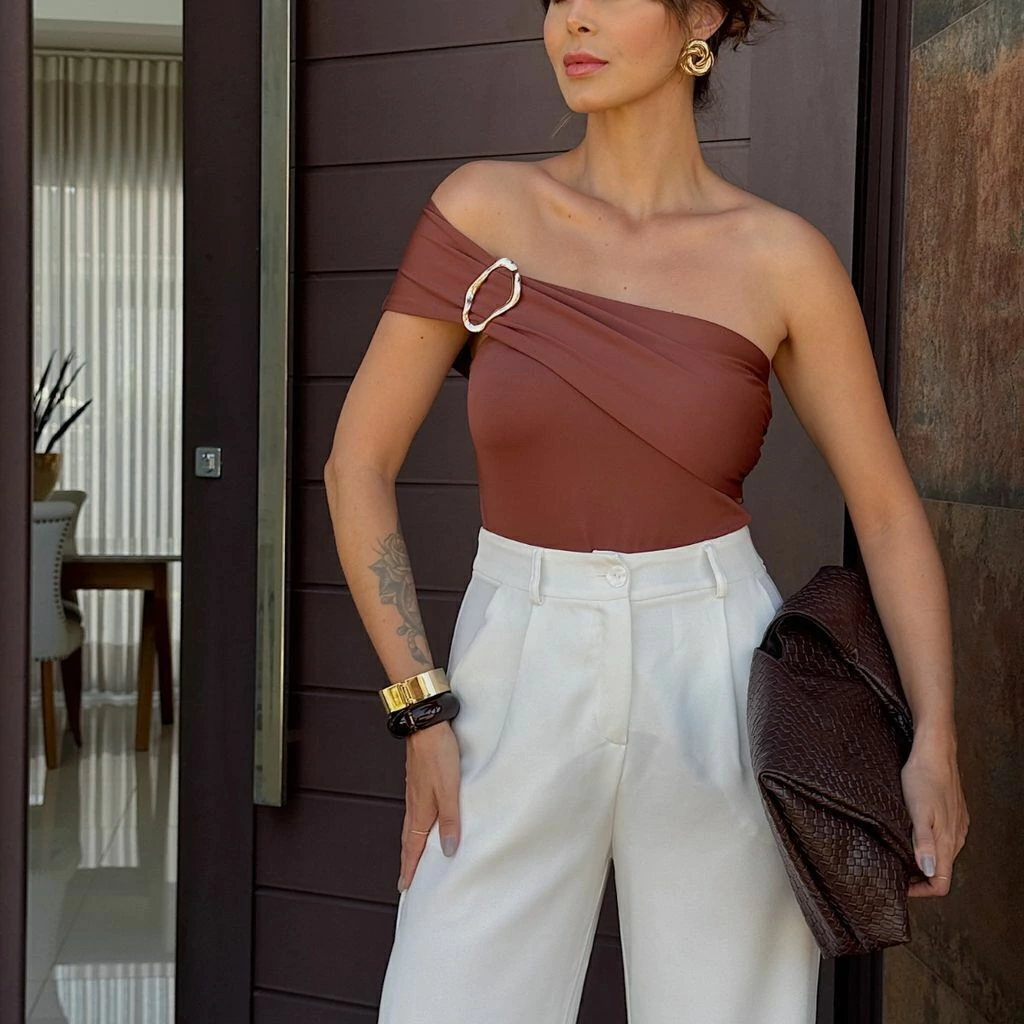 Com detalhe de fivela orgânica exclusiva, este body marrom é perfeito para quem busca um visual contemporâneo e natural. Seu design versátil valoriza a silhueta, proporcionando um toque de autenticidade ao look.