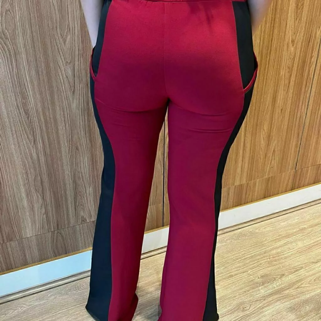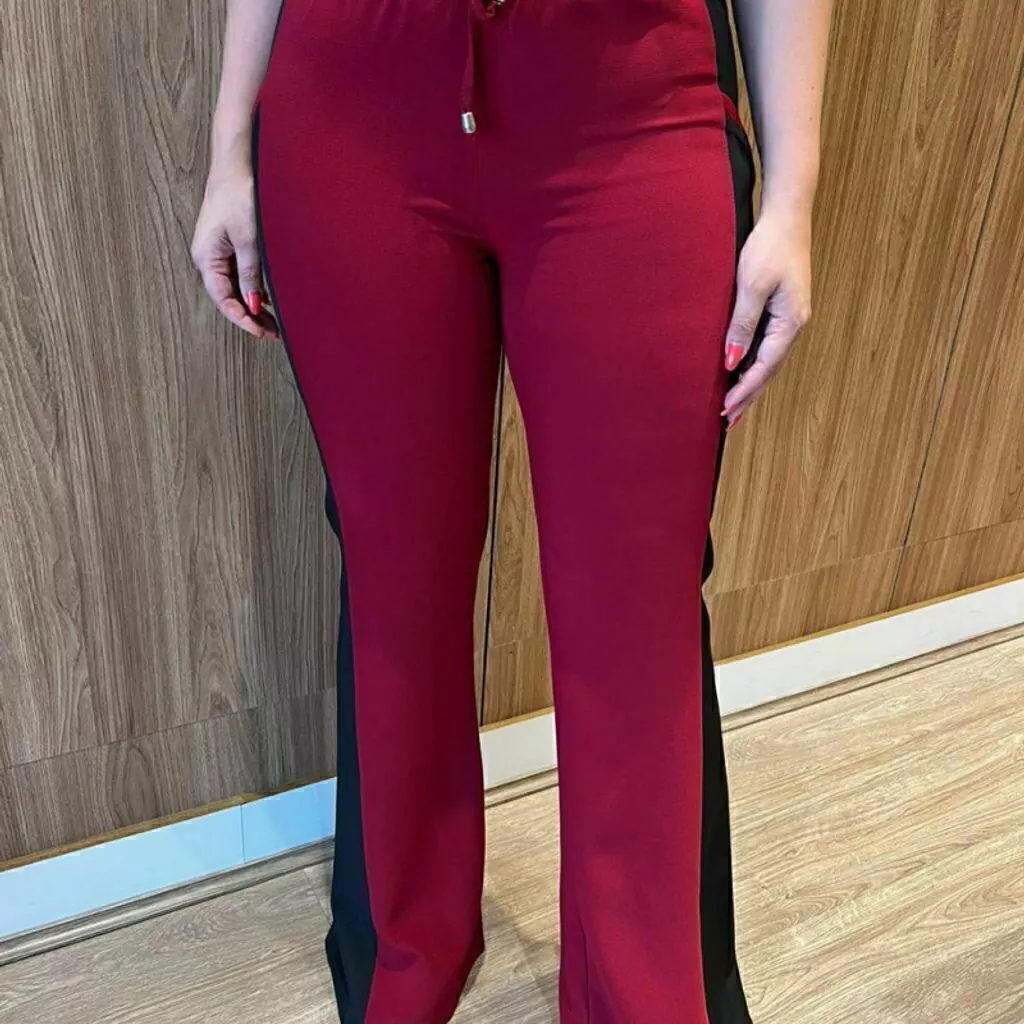 Calça Tecido Crepe, com elástico na cintura e ajuste de amarração. Possui bolsos laterais funcionais.