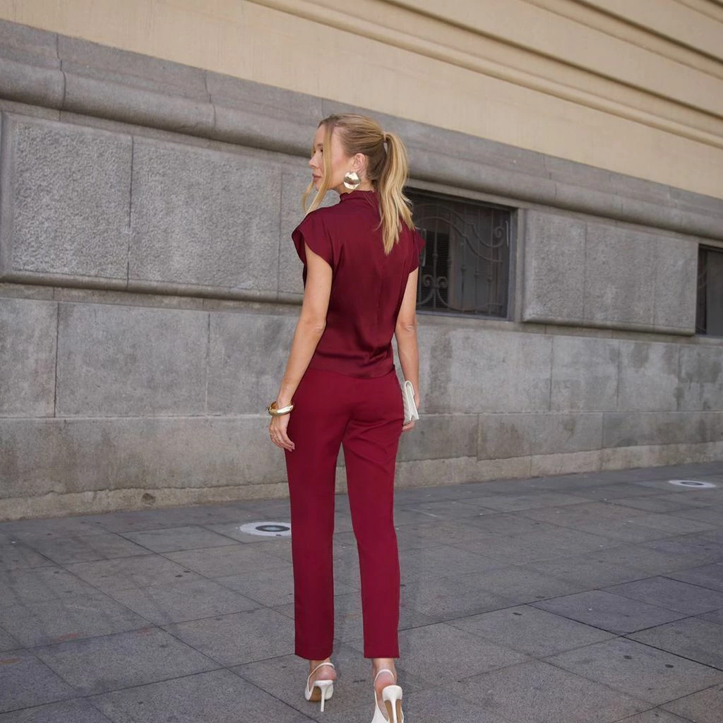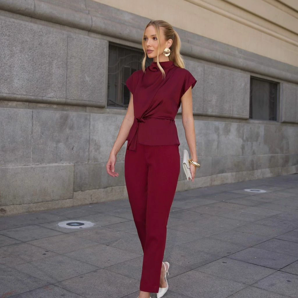 A Calça Helen é confeccionada em tecido de crepe alfaiataria, possui fechamento em zíper.