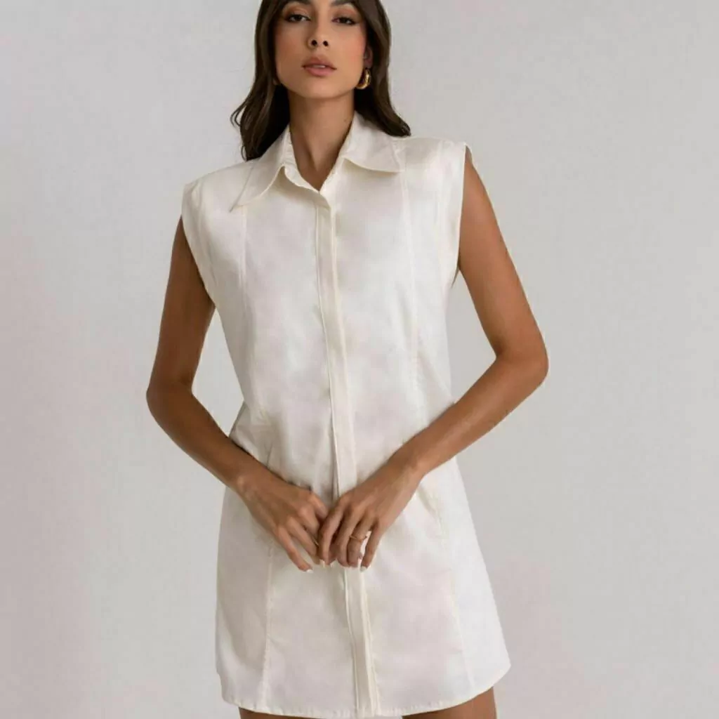 Camisa alongada tecido tricoline, possui detalhe de lapela e botões funcionais para fechamento.