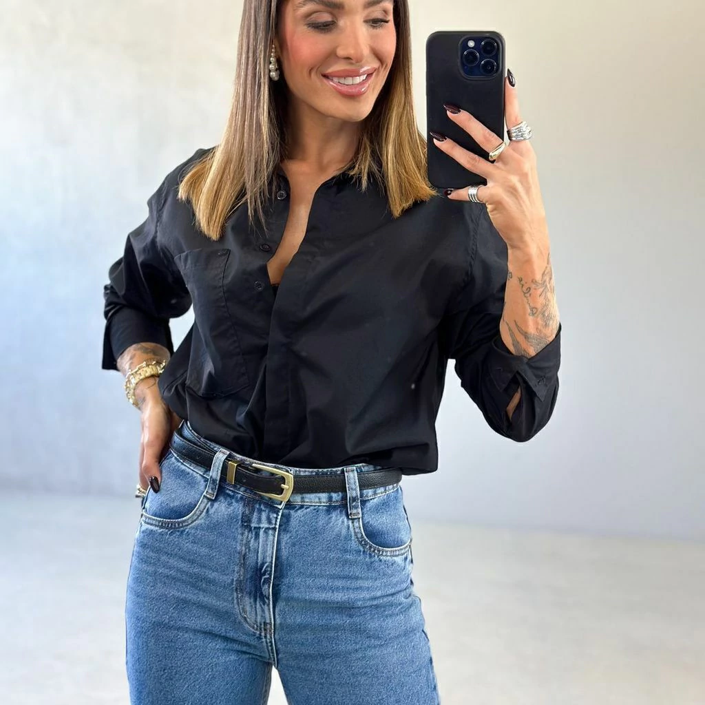 Descubra a sofisticação atemporal da Camisa Tricoline Preto, best seller da nossa coleção! Perfeita para quem valoriza elegância, praticidade e qualidade em uma peça versátil, ela é indispensável no guarda-roupa de qualquer mulher.