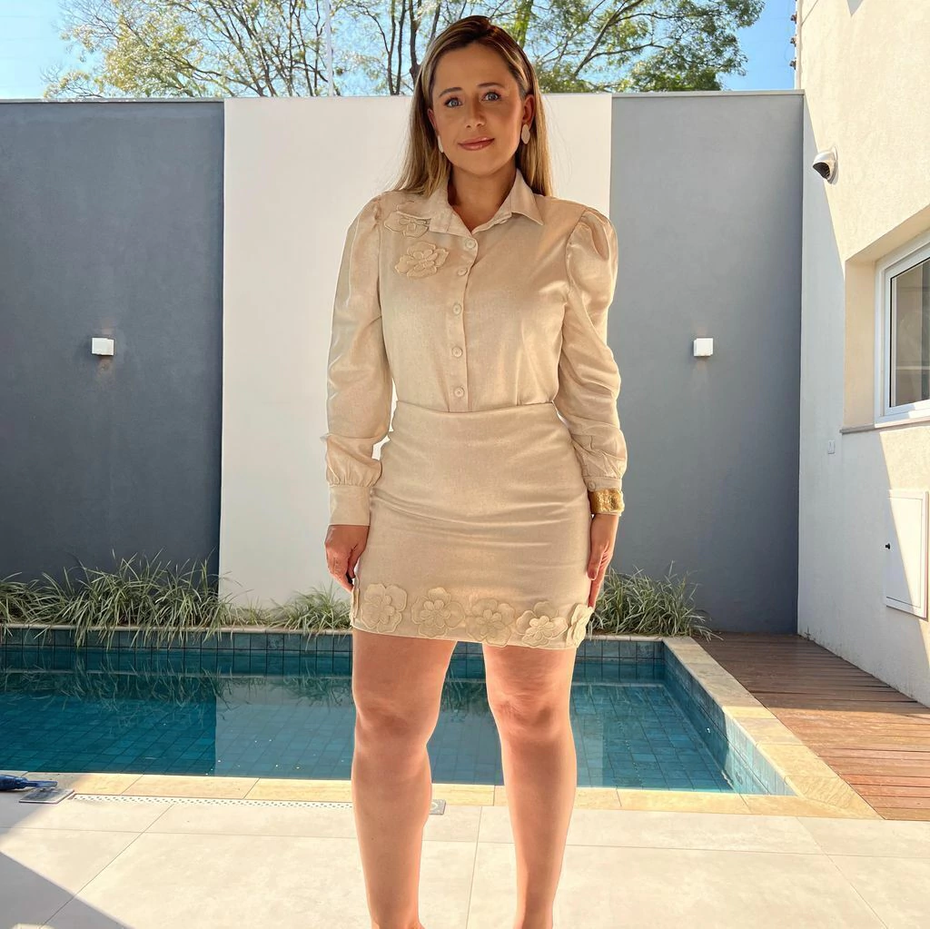 A camisa possui fechamento frontal com botões, design clean e moderno, além de detalhes exclusivos de bordado eletrônico que agregam charme e delicadeza à peça. O acabamento diferenciado garante um visual sofisticado e atual. Já o shorts saia oferece praticidade e estilo, unindo conforto à tendência com sua modelagem versátil.