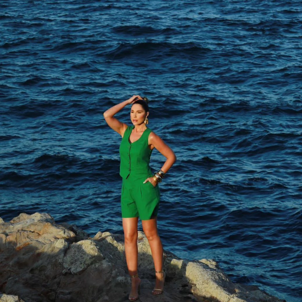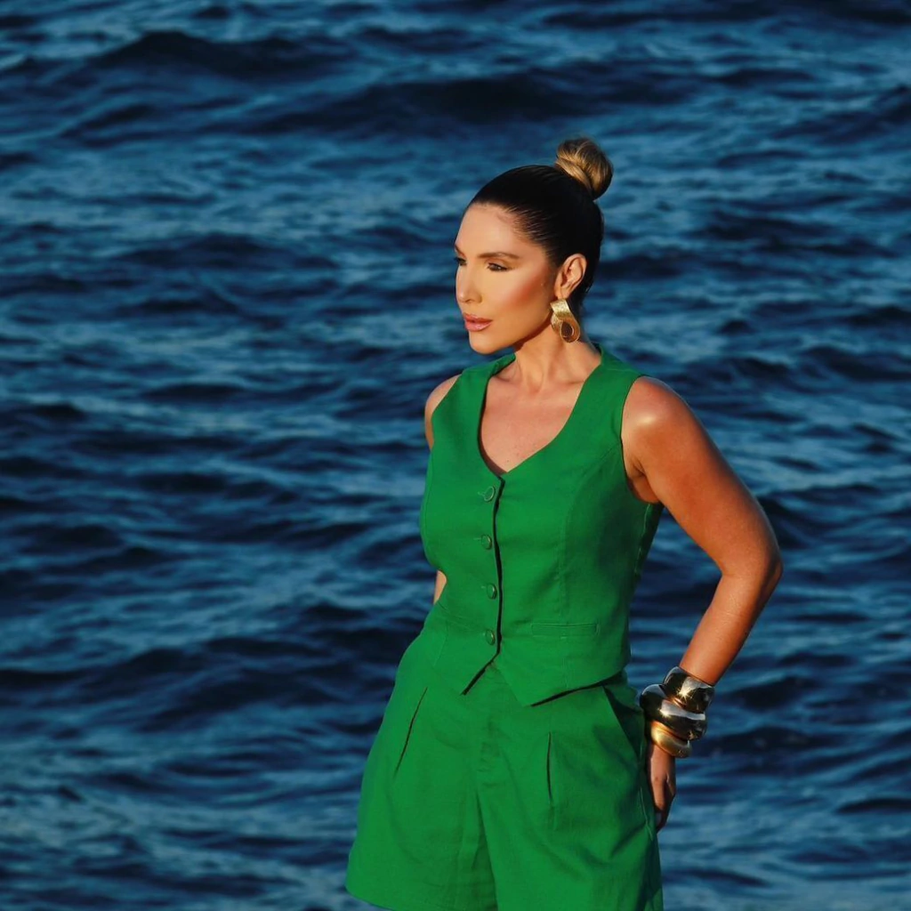 Conjunto Colete e Shorts Verde Laura em Linho com Viscose