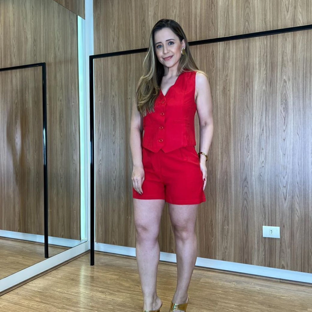 Invista no Conjunto Colete e Shorts Vermelho e destaque-se com conforto, estilo e elegância em qualquer ocasião!