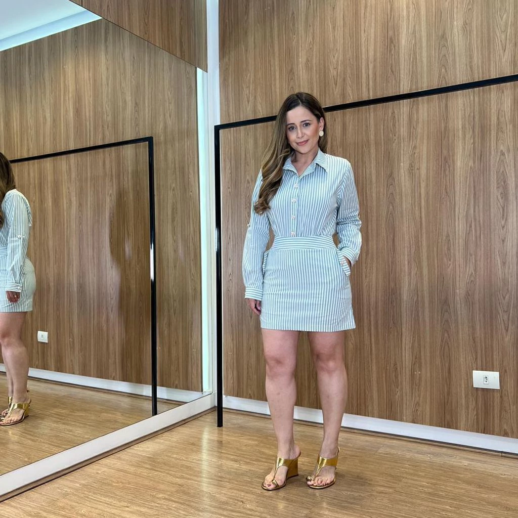 Invista no Conjunto Listra Camisa e Shorts Saia Milena e renove seu visual com elegância, praticidade e o melhor do conforto em tricoline listrado!