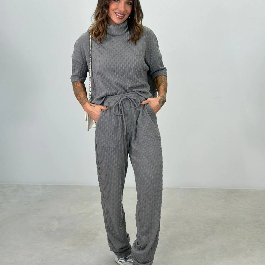 Descubra o Conjunto Malha Tricô Cinza, uma escolha perfeita para quem valoriza conforto, estilo e praticidade no dia a dia. Confeccionado em malha tricô de alta qualidade, sua composição de 99% poliéster e 1% elastano oferece toque macio, caimento impecável e excelente elasticidade, garantindo liberdade de movimentos para qualquer ocasião.