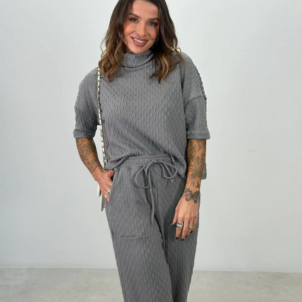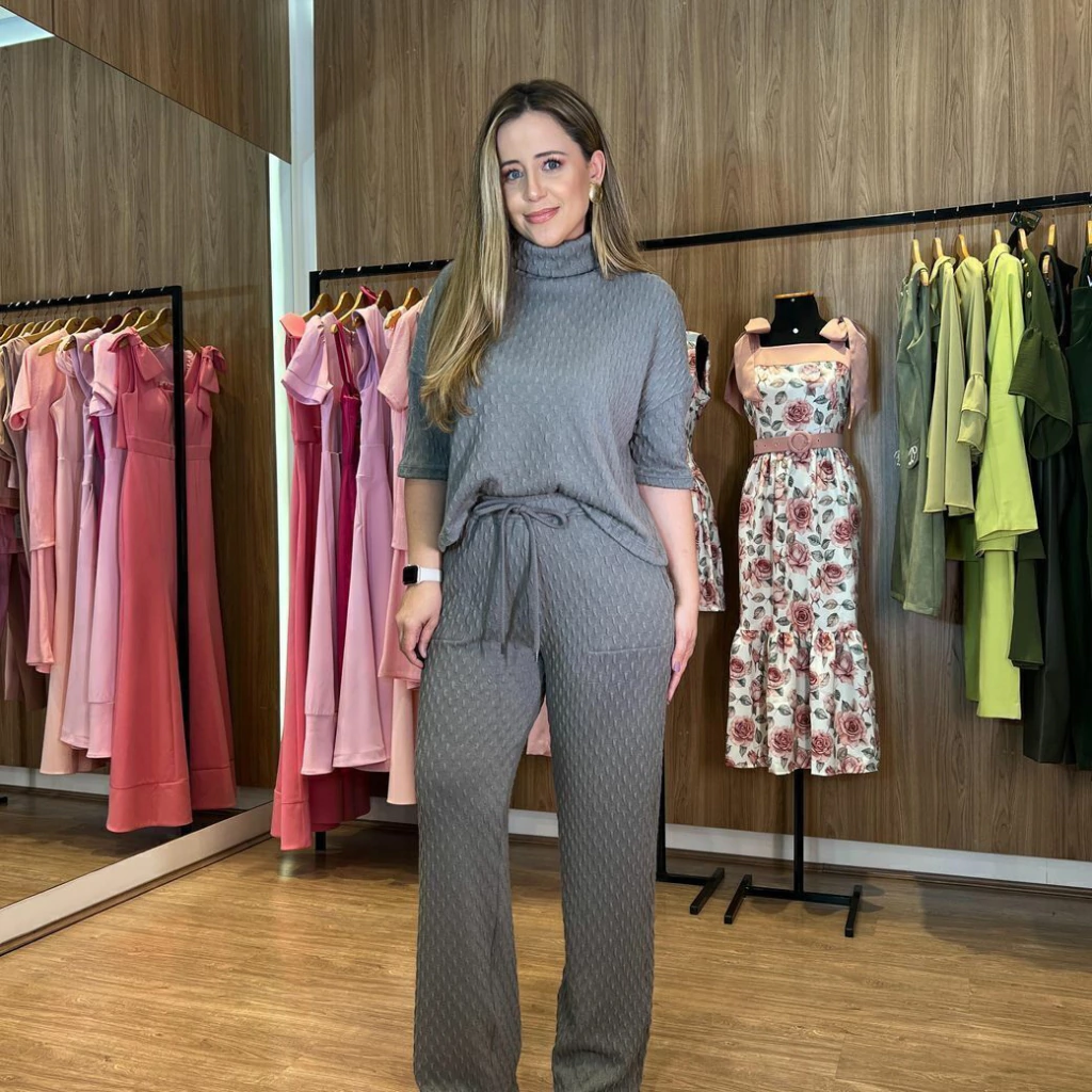 O Conjunto Malha Tricô Cinza é perfeito para compor visuais elegantes tanto para o trabalho quanto para momentos de lazer. Aposte em tênis para um look casual, ou em botas e acessórios para uma proposta mais sofisticada.