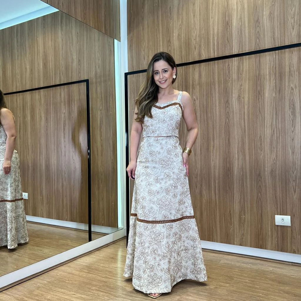Descubra a sofisticação do Conjunto Saia Longa e Cropped em Linho Bordado, a escolha perfeita para quem deseja unir elegância e frescor em uma única produção. Com design moderno e acabamento delicado, este conjunto valoriza a silhueta e proporciona charme em todas as ocasiões.