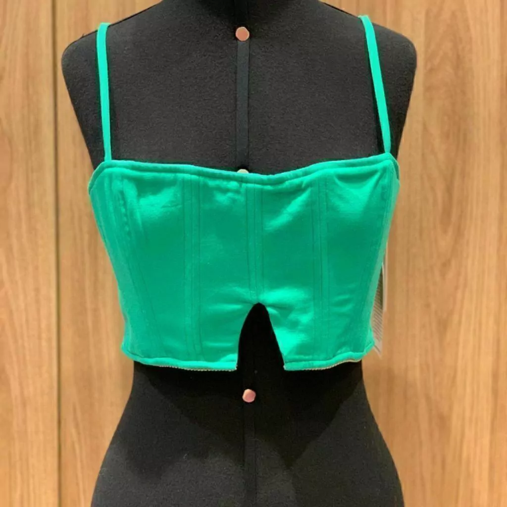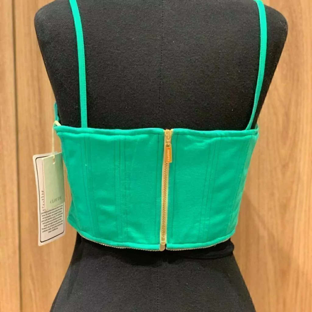Cropped tecido não possui elastano, sem bojo e com barbatanas.