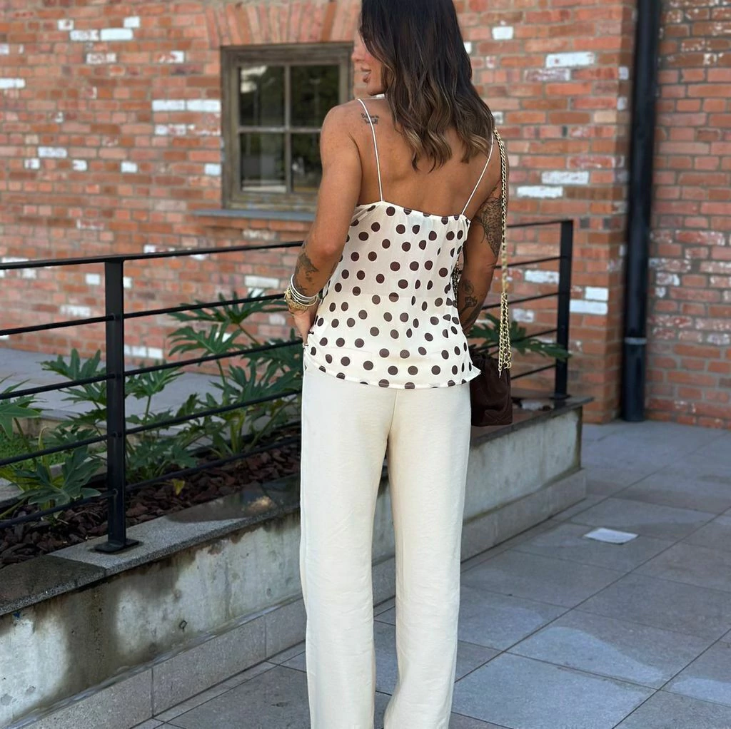 A Regata Alça Poá Creme é perfeita para criar produções que transitam do casual ao sofisticado. Combine com saias, shorts ou calças de alfaiataria para um visual elegante e atual. Ideal para dias quentes, passeios, eventos ao ar livre ou para trazer frescor ao office look.