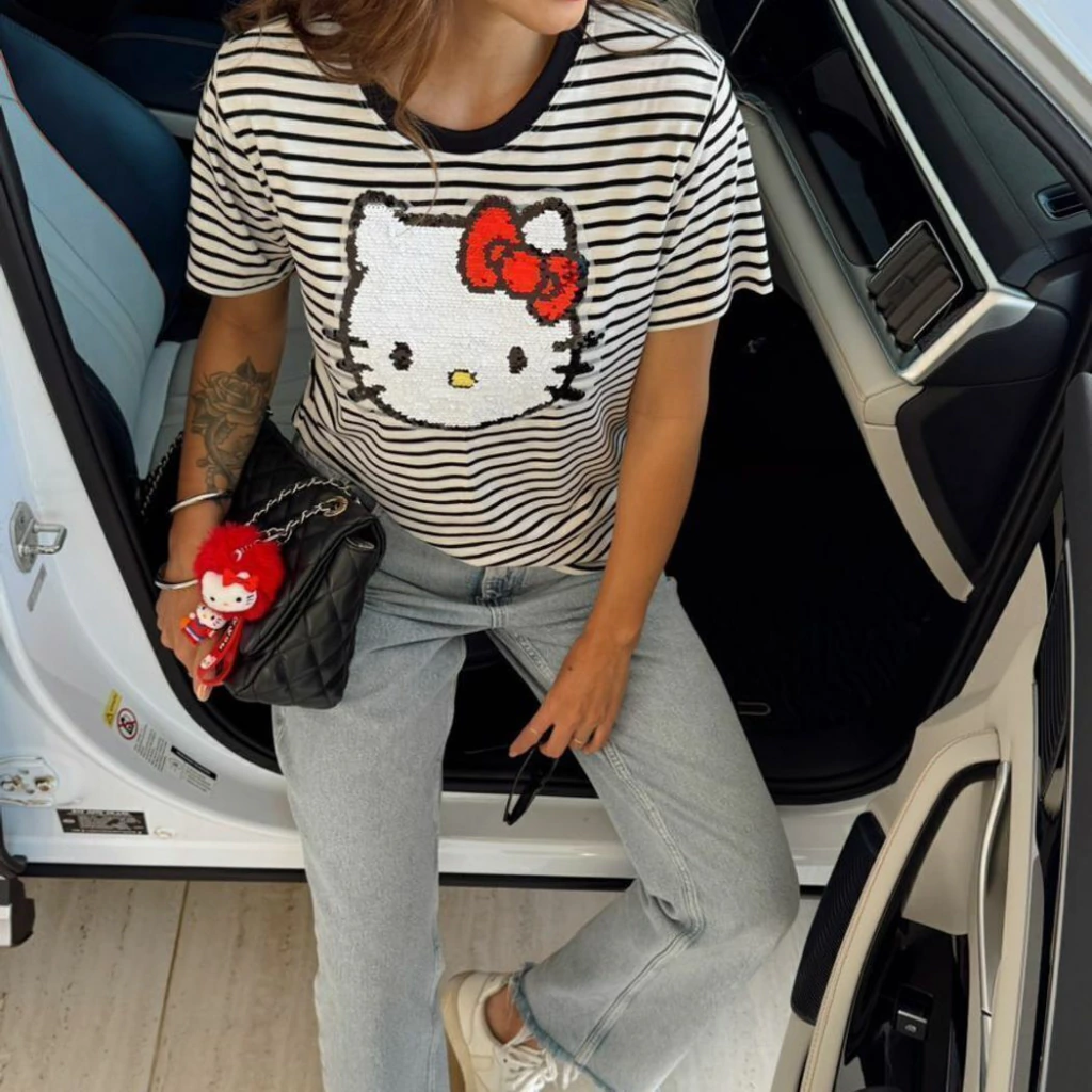 Aproveite para garantir já a sua T-Shirt Listra com estampa Hello Kitty e transforme seus looks com muita fofura e autenticidade!