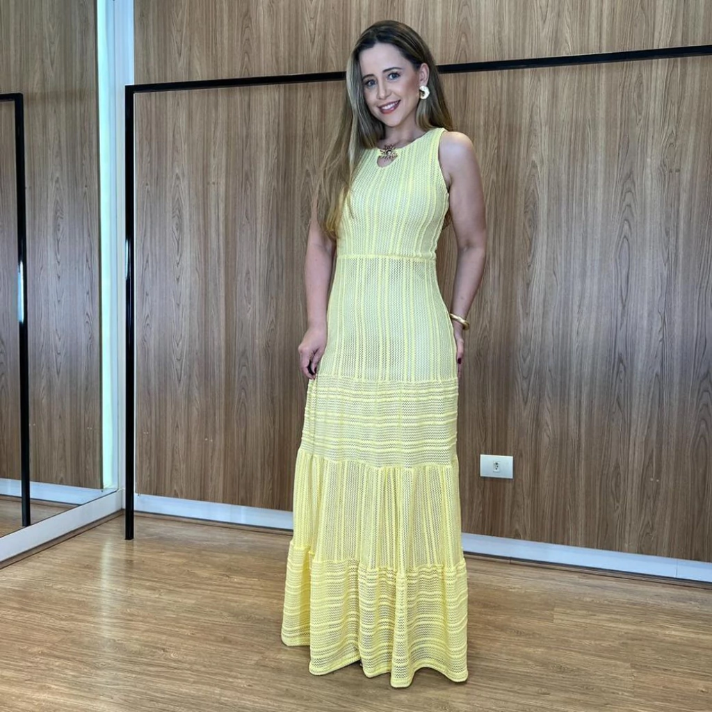 O Vestido Amarelo Longo Meire é versátil e fácil de combinar com diferentes acessórios, bolsas e sapatos. Use com sandálias para um visual mais descontraído ou aposte em saltos para uma produção poderosa. Seu tecido com elastano se ajusta perfeitamente ao corpo, promovendo conforto e beleza em cada movimento.