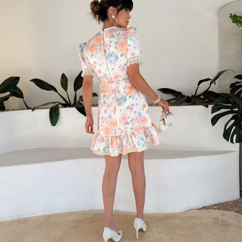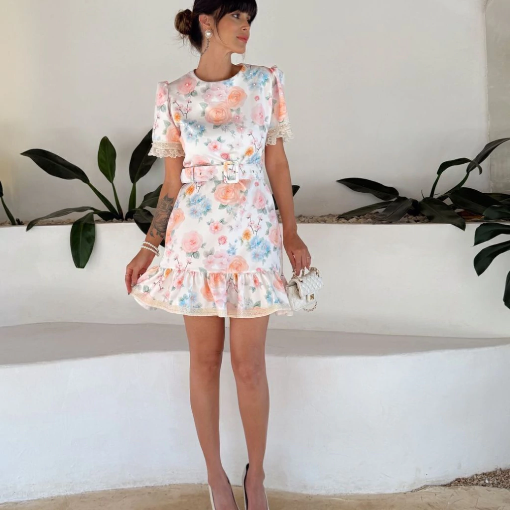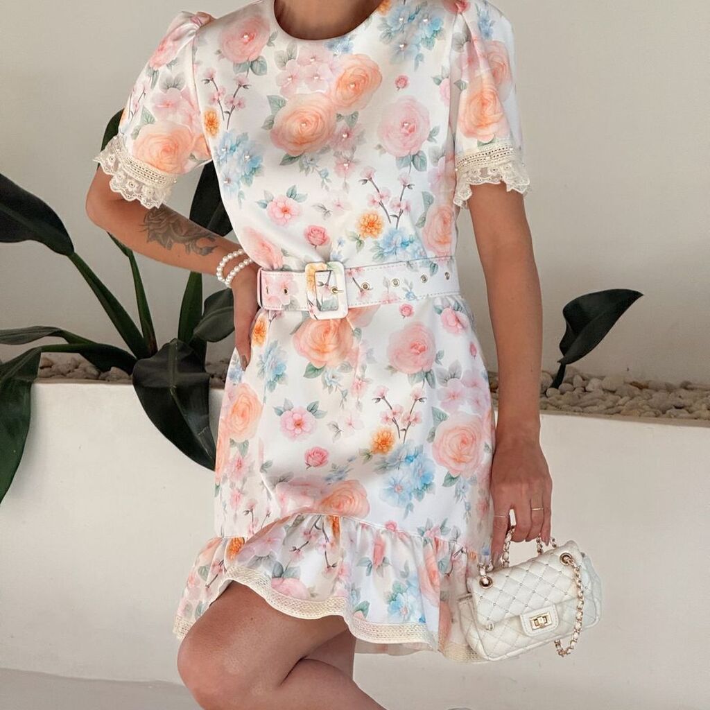 Invista no Vestido Curto Floral com Cinto em crepe alfaiataria e realce sua feminilidade com uma peça que une conforto, estilo e sofisticação em cada detalhe!