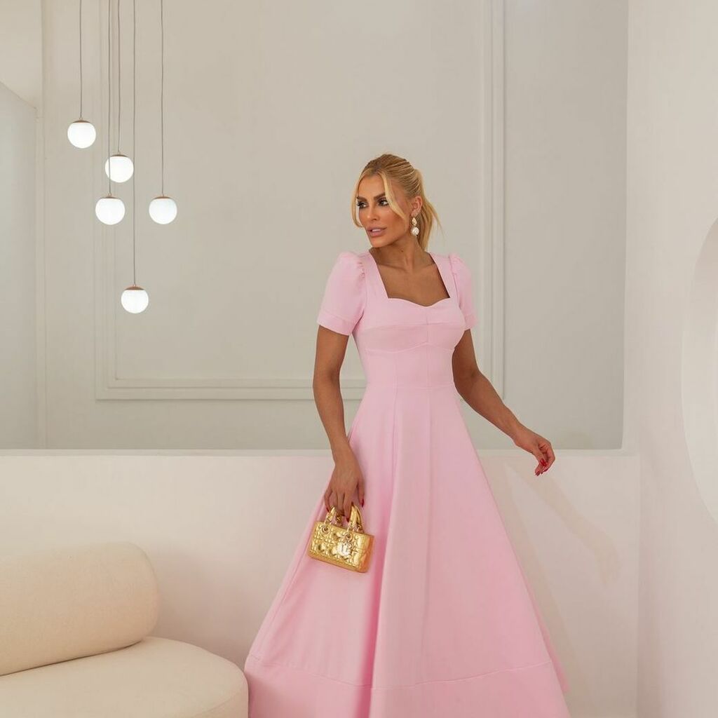 Invista no Vestido Midi de Crepe com Manga Bufante e Decote Coração Rosa e eleve seu estilo em qualquer evento!
