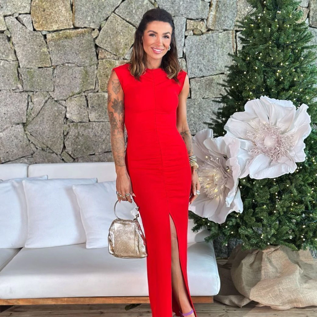 Vestido Midi Vermelho Keilla – Elegância, Conforto e Estilo para Todas as Ocasiões